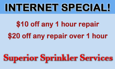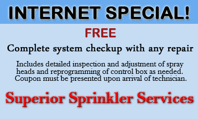At Superior Sprinkler Services, it is our promise to remain competitive, yet affordably priced. We firmly believe that beautiful healthy lawns should not cost you a fortune. In doing so, we are providing you with a variety of money-saving coupons so that can enjoy your lawn and landscaping without costing you an arm and a leg. Please be aware that though we encourage you to take advantage of our coupons, we also ask that no two offers be combined and that these promotions cannot be combined with any other offer.