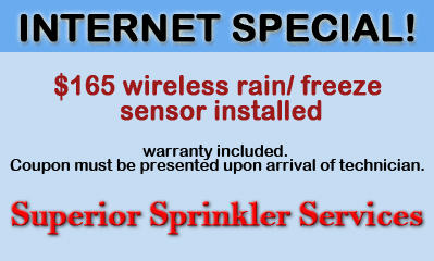 At Superior Sprinkler Services, it is our promise to remain competitive, yet affordably priced. We firmly believe that beautiful healthy lawns should not cost you a fortune. In doing so, we are providing you with a variety of money-saving coupons so that can enjoy your lawn and landscaping without costing you an arm and a leg. Please be aware that though we encourage you to take advantage of our coupons, we also ask that no two offers be combined and that these promotions cannot be combined with any other offer.